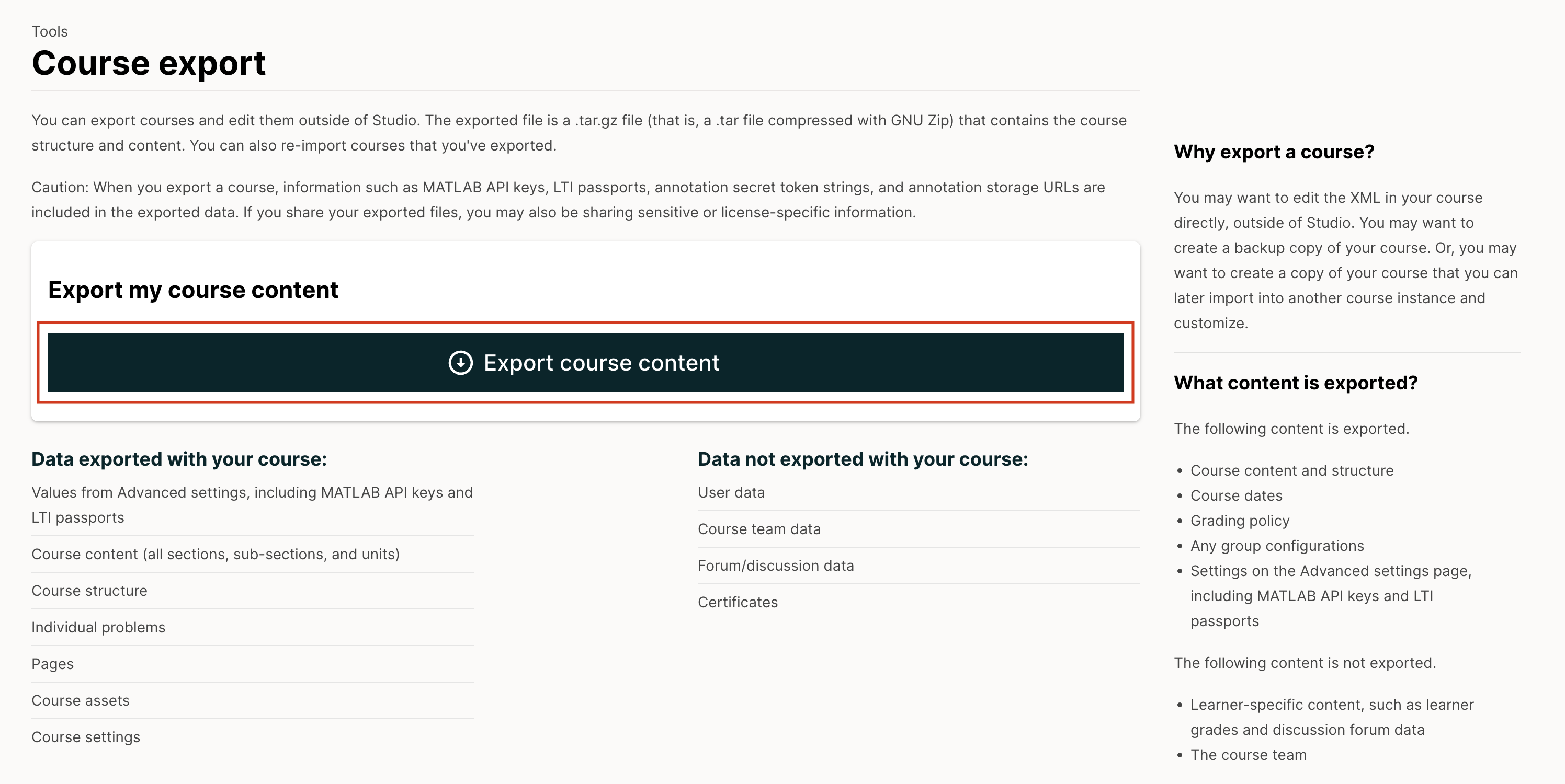 When you export your course, Studio creates a .tar.gz