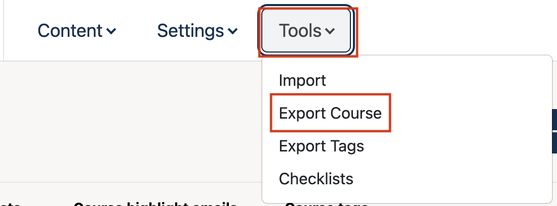 Select Export Course Content.