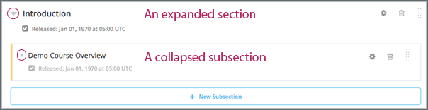 To add a subsection to the end of the section, expand the section and select New Subsection.