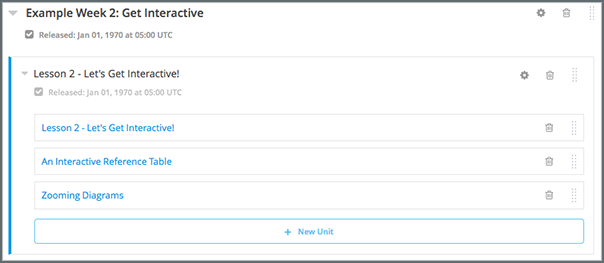 To add a unit to the end of a subsection, expand the subsection and select New Unit. The unit page opens.