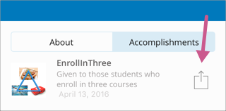 On the certificate web page, select the badge sharing icon.