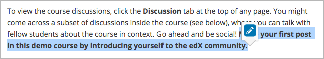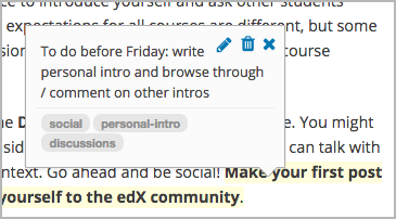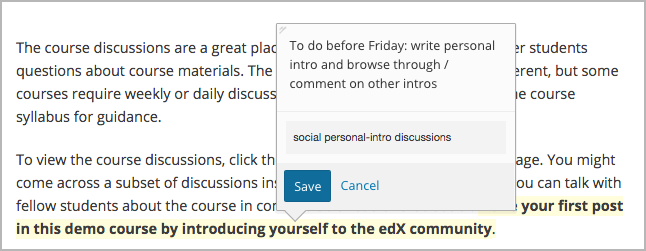 As you work through a course, you may want to highlight a particular passage or make a note about what you have read. In some courses, you can highlight passages and make notes right in the course.