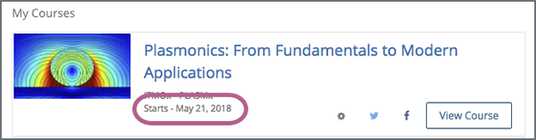 After you enroll in a course, the course is visible on your dashboard. The course start date is located below the course title.